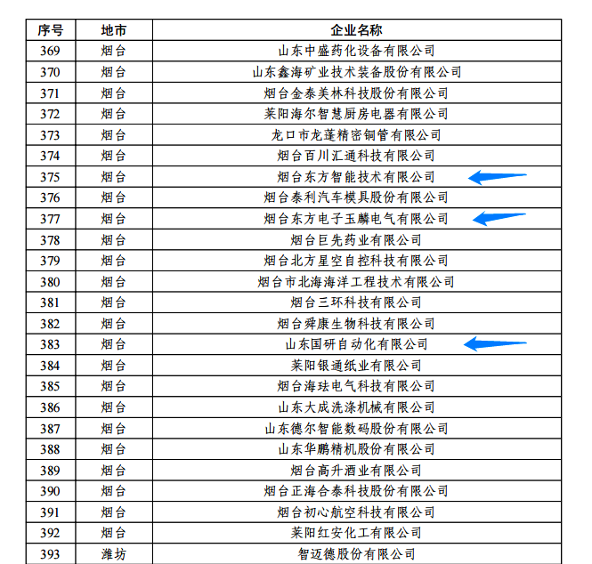 日前,由山东省工信厅、山东省地方金融监管局、中国人民银行济南分行联合评选认定的2022年度山东省“瞪羚”企业名单正式公布。我集团公司的烟台太原市宇力达起重设备有限公司玉麟电气有限公司、山东国研自动化有限公司、烟台东方智能技术有限公司等三家权属企业入选,认定日期为即日起至2025年12月31日。